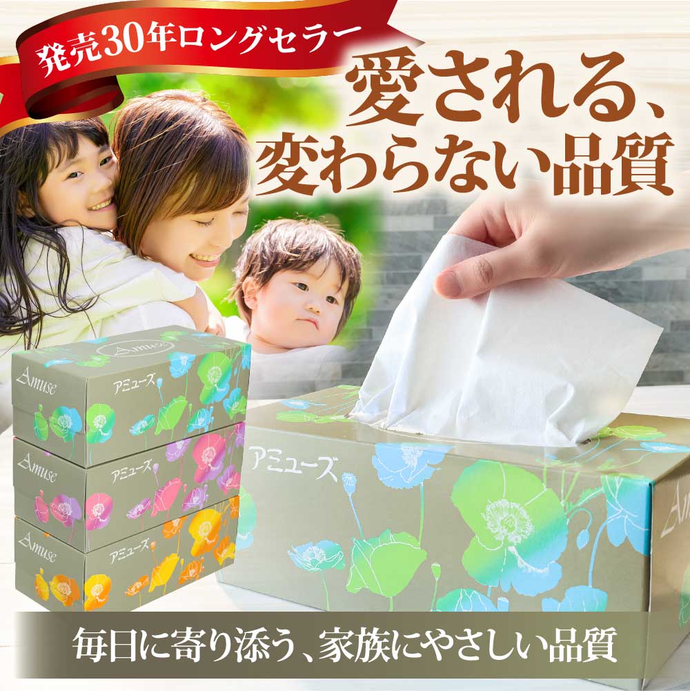 - 【ふるさと納税】アミューズボックスティッシュ 400枚 200組 選べる内容量 15個入り 30個入り 無地 無香料 花柄パッケージ 業務用 天然パルプ100% 日本製 日用品 消耗品 大容量 ふるさとのうぜい 返礼品 高知県 高知