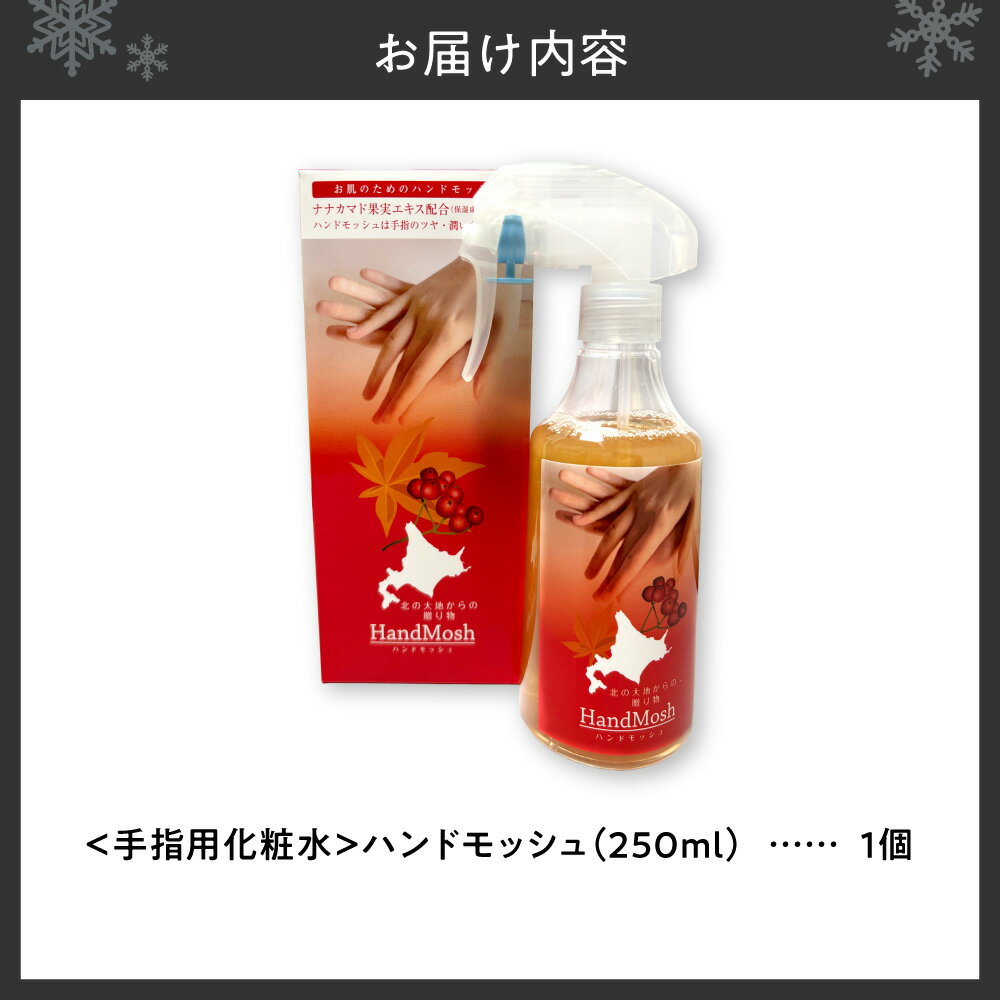 【ふるさと納税】 消毒液 手指用 化粧水 250ml ハンドモッシュ ナナカマド 果実エキス 肌にやさしい 天然化粧水 保湿効果 殺菌 除菌 指 指先 手 ハンドケア ツヤ 潤い ナチュラル素材 日用品 ギフト プレゼント 贈り物 北海道 札幌市