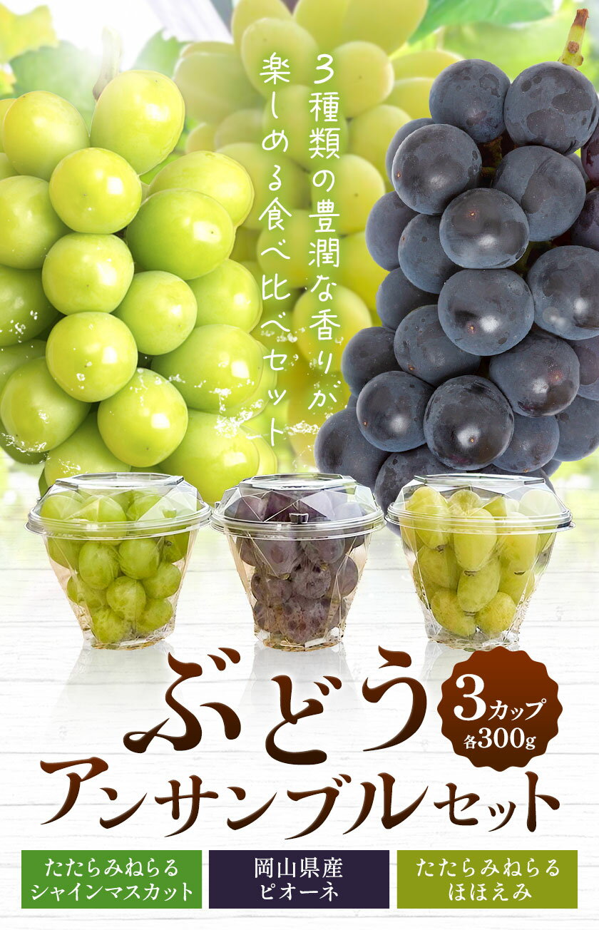 - 【ふるさと納税】【先行予約】ぶどう 食べ比べ たたらみねらる シャインマスカット ほほえみ ピオーネ ぶどうアンサンブルセット 3カップ 各300g Y&G.ディストリビューター株式会社《2026年8月中旬-10月上旬頃出荷》岡山県 笠岡市 果物 フルーツ ブドウ お取り寄せ