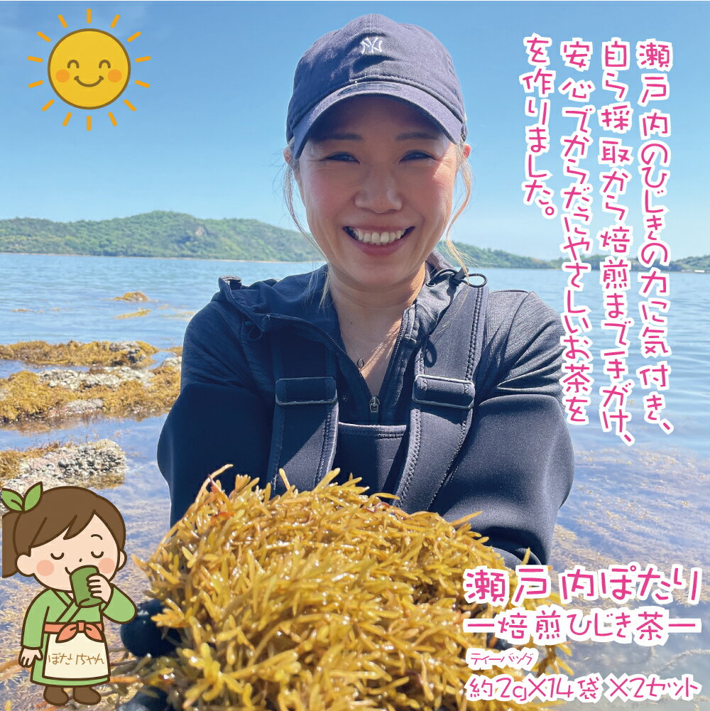 【ふるさと納税】焙煎 ひじき茶 瀬戸内ぽたり 計約56g((約2g×14パック)×2セット) お茶 健康茶 美容茶 ノンカフェイン カフェインレス ダイエット茶 デトックス茶 鉄分補給 食物繊維 腸活 美肌習慣 ミネラル豊富 瀬戸内産 焙煎ひじき茶 キャスミン監修 送料無料