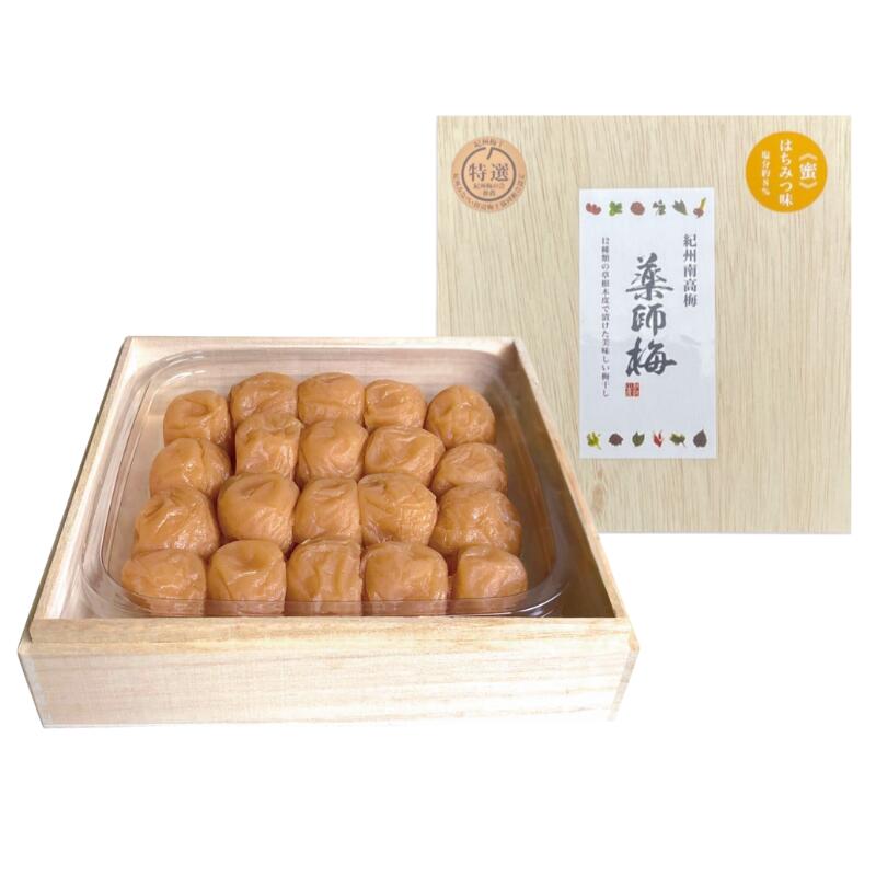 - 【ふるさと納税】薬師梅 贈答用 木箱入り『蜜』 はちみつ梅 450g|紀州南高梅・無添加・まろやか塩分8%