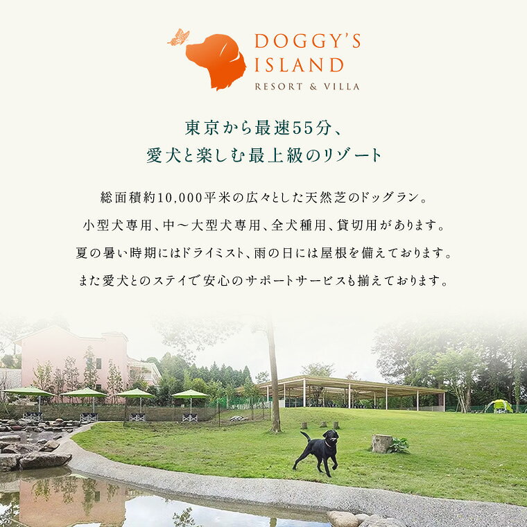 【ふるさと納税】愛犬と泊まれる ドギーズアイランド 宿泊チケット グランピングヴィラ スイートヴィラ 1泊朝食付き ペア宿泊券 大人2名+愛犬1頭 リゾート ホテル ペア ドッグラン利用可 千葉県八街市 観光 旅行 チケット ギフト ペット 犬 旅行 八街市 旅行券 食事付き