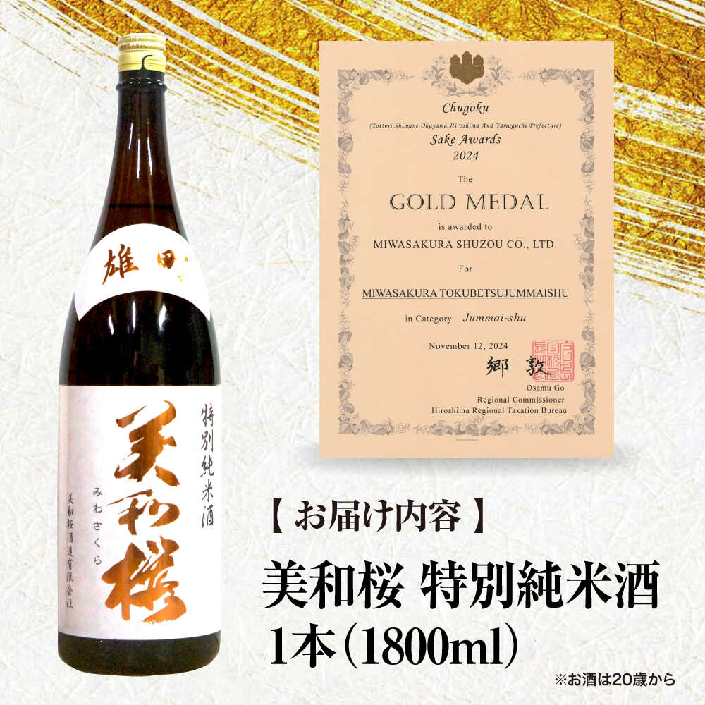 - 【ふるさと納税】【先行予約】 日本酒 美和桜 特別純米酒 <2026年3月上旬から順次発送> 三次で作った雄町のお酒 1800ml 日本酒 お酒 純米酒 人気 地酒 酒 日本酒 雄町 冷酒 熱燗 辛口 旨口 晩酌 清酒 高級 贅沢 ご褒美 贈答 人気 おすすめ 三次市 / 美和桜酒造[APBF010]