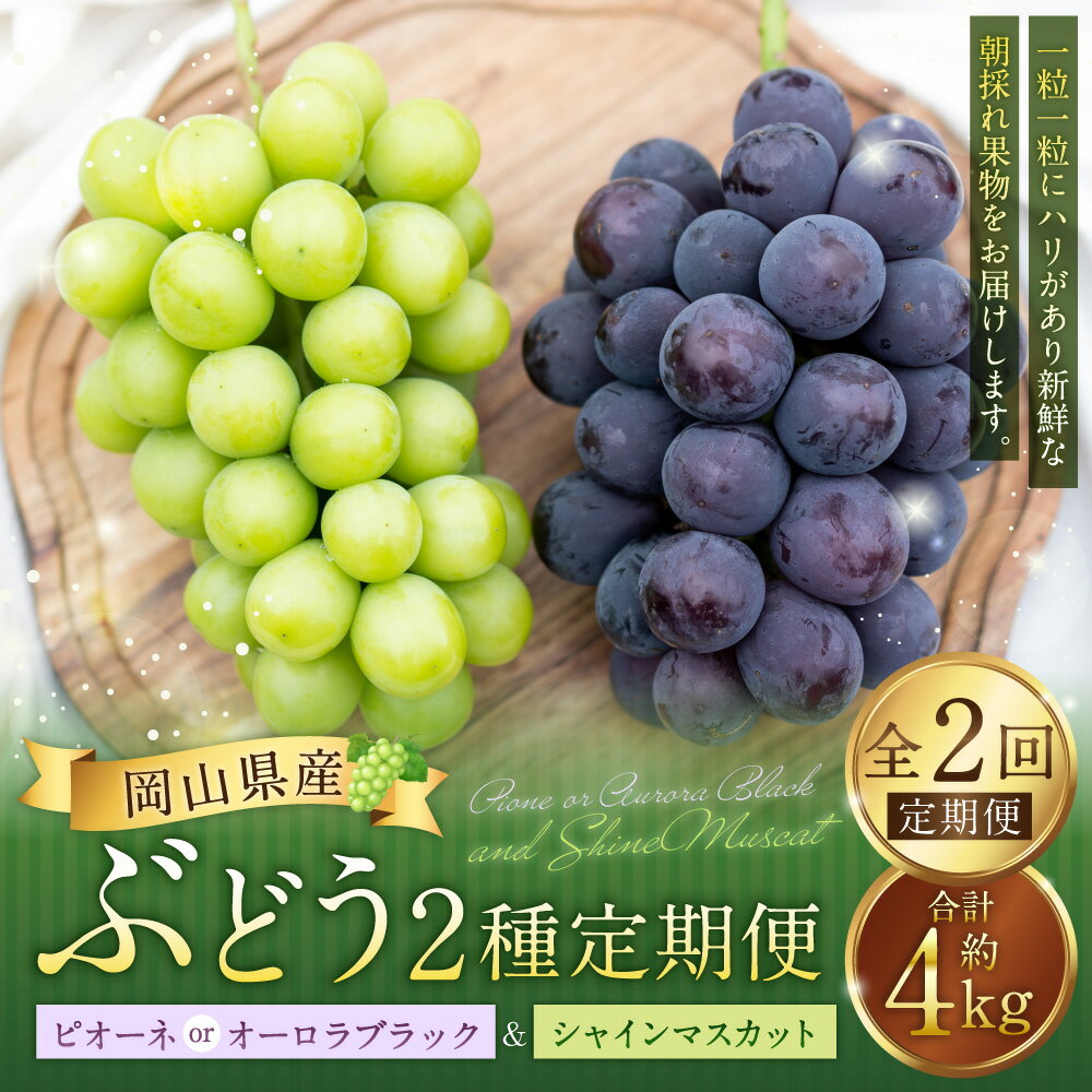 - 【ふるさと納税】【2回定期便】ピオーネ or オーロラブラック 3~5房(2kg以上)& シャインマスカット 3~5房(2kg以上) マスカット ぶどう ブドウ 葡萄 くだもの 果物 果実 フルーツ ギフト 冷蔵 国産 岡山県産 美咲町 送料無料 【2026年7月下旬から順次発送予定】