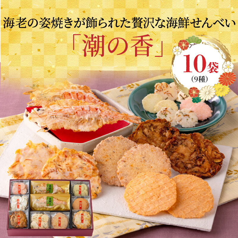 【ふるさと納税】ワンランク上 海鮮煎餅詰合せ 海老 えびせん 海老姿焼き 贈り物 ギフト お歳暮 せんべい おつまみ 海鮮 乾物 和菓子 醤油味 お菓子 おやつ 煎餅 小分け 潮の香 10袋 9種 えび セット プレゼント 慶事 弔事 熨斗 対応