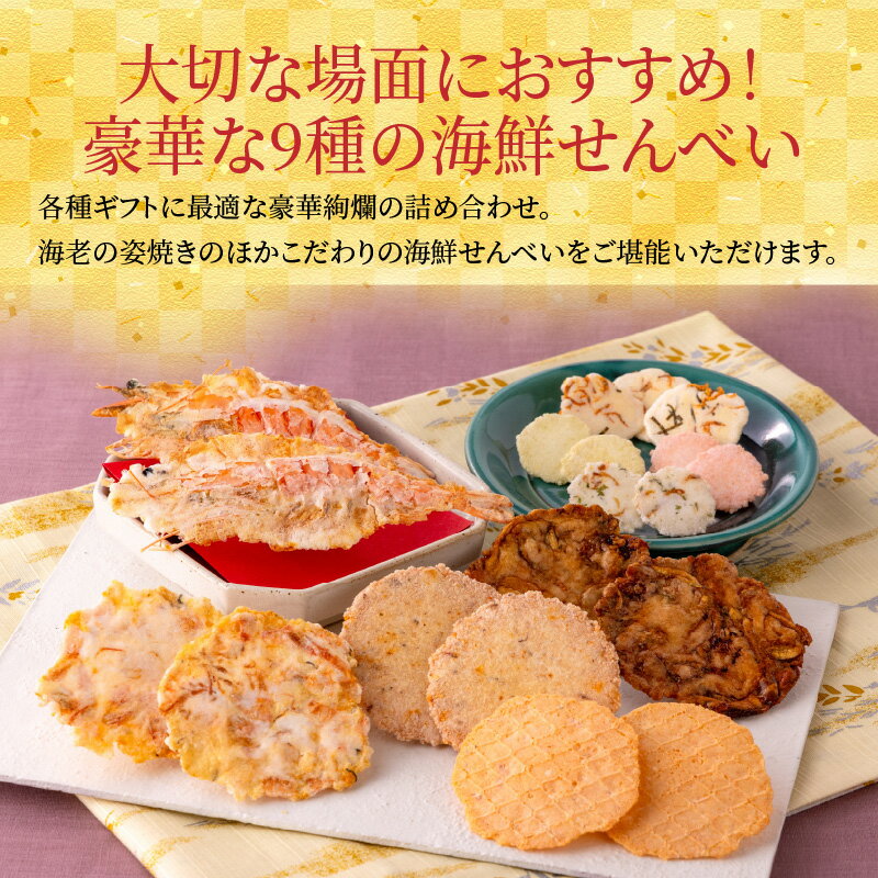 - 【ふるさと納税】ワンランク上 海鮮煎餅詰合せ 海老 えびせん 海老姿焼き 贈り物 ギフト お歳暮 せんべい おつまみ 海鮮 乾物 和菓子 醤油味 お菓子 おやつ 煎餅 小分け 潮の香 10袋 9種 えび セット プレゼント 慶事 弔事 熨斗 対応
