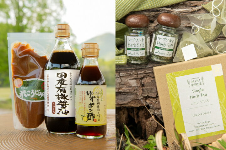 - 【ふるさと納税】【三木市×多可町】ハーブセットと国産有機醤油 ゆずポン酢 米こうじみそ 詰め合わせ ハーブ ハーブソルト ハーブティ レモングラス 国産 有機 醤油 ゆず ポン酢 こうじ 米こうじ みそ