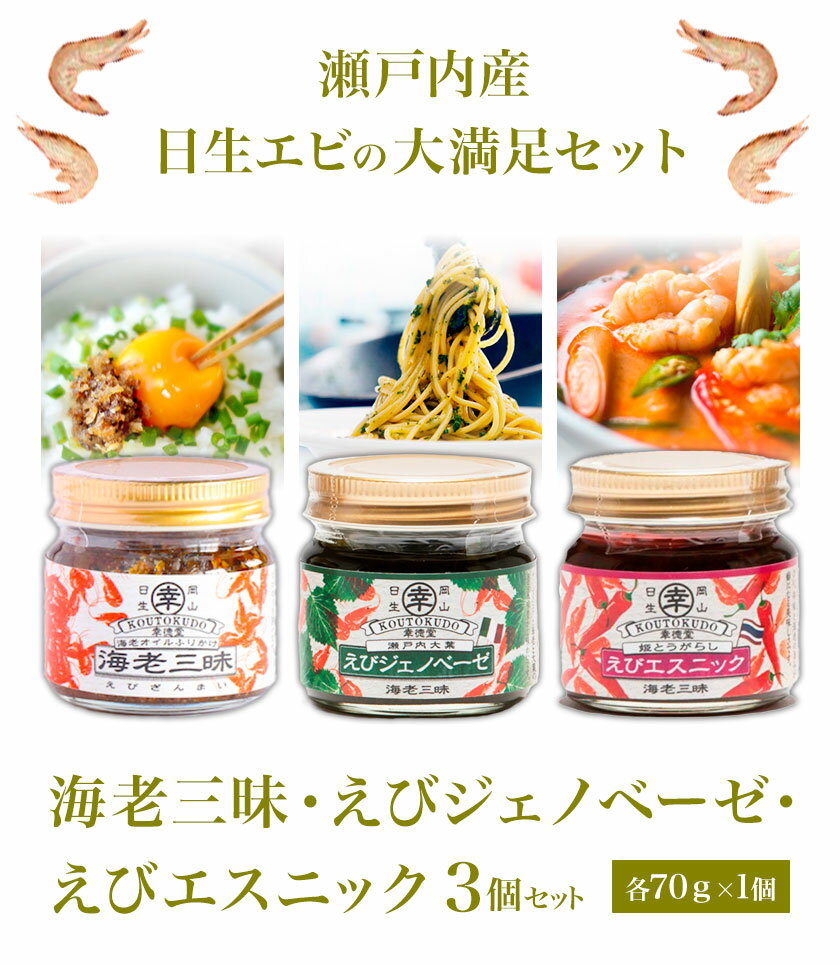 【ふるさと納税】海老三昧・えびジェノベーゼ・えびエスニック3個セット 万能調味料 ご飯のお供 幸徳堂《30日以内に出荷予定(土日祝除く)》岡山県 備前市 惣菜 海老 調味料 えび