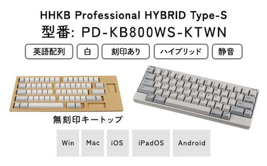 - HHKB Professional HYBRID Type-S 英語配列/白(無刻印キートップセット付) PD-KB800WS-KTWN ※着日指定不可