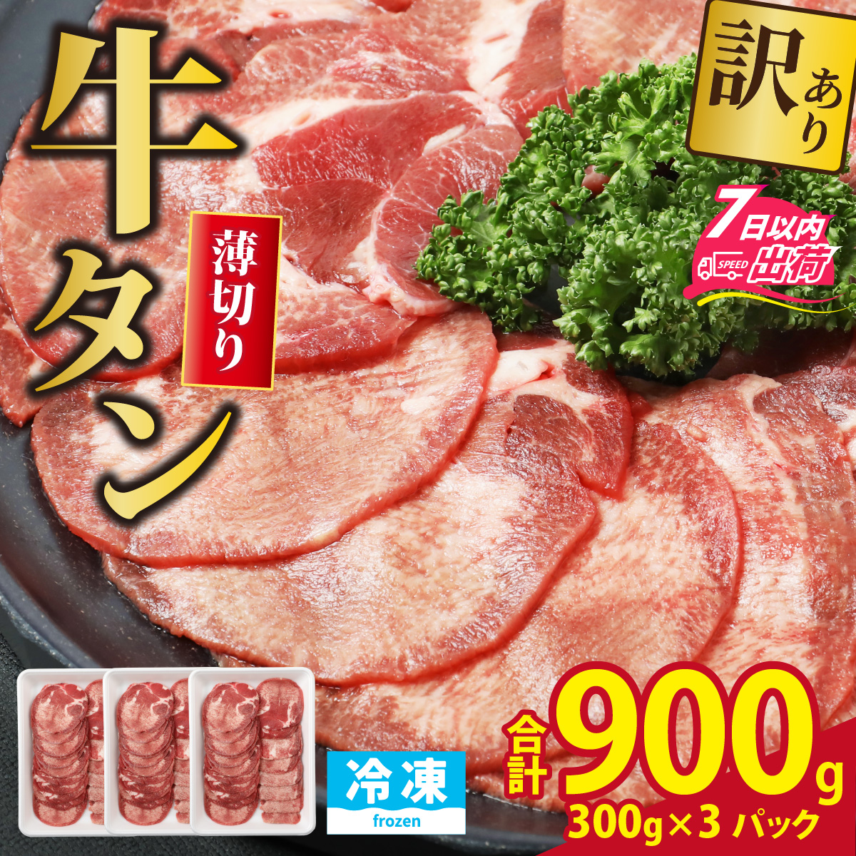 - 【訳あり】 牛タン 薄切りスライス 合計900g(300g×3パック)[A-118008]