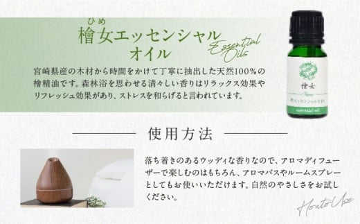 - 都農町製造『檜女(ひめ)エッセンシャルオイル(10ml) 』計1本 檜 香り 天然 リラックス 国産_T058-003