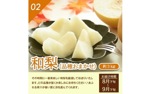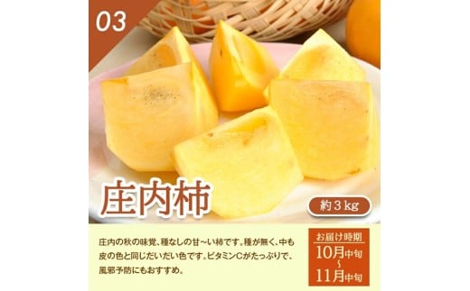 - ≪4回定期便≫ とれたて!フルーツ頒布会2026 6月下旬~8月上旬 アンデスメロン 青肉 約3kg 8月下旬~9月下旬 和梨 約3kg 10月中旬~11月中旬 庄内柿 種なし柿 約3kg 11月上旬~12月上旬 ラ・フランス 約3kg 山形県酒田産 2026年 小林青果店 SF0319