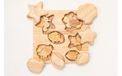 - 木のおもちゃ パズル かくれんぼパズル うみべ 海辺 生き物 動物 木製 知育玩具 赤ちゃん ベビー 男の子 女の子 ギフト プレゼント 贈り物 出産祝い 誕生日祝い 日本製 手作り 名入れ可能 山のくじら舎 2歳 幼児 子供 玩具 エデュケーショナルトイ 幼児教育 脳トレ 感覚刺激 海の生き物 魚 貝 木のパズル 想像力 創造力 集中力 観察力 ヒノキ スギ フェルト 安芸市 高知県