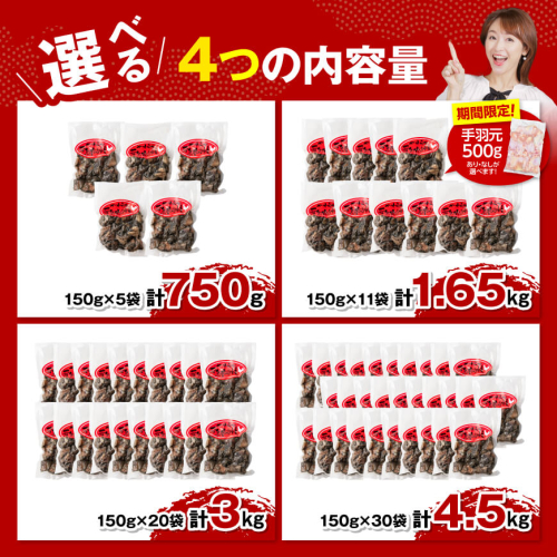 ※発送月・内容量が選べる※ 宮崎県産若鳥 やわらか炭火焼 750g~4500g 【1650gのみ手羽元500gあり・なしが選べる】【 鶏 肉 鶏肉 国産 とり 九州産 鳥 宮崎県産 小分け 炭火焼き 】
