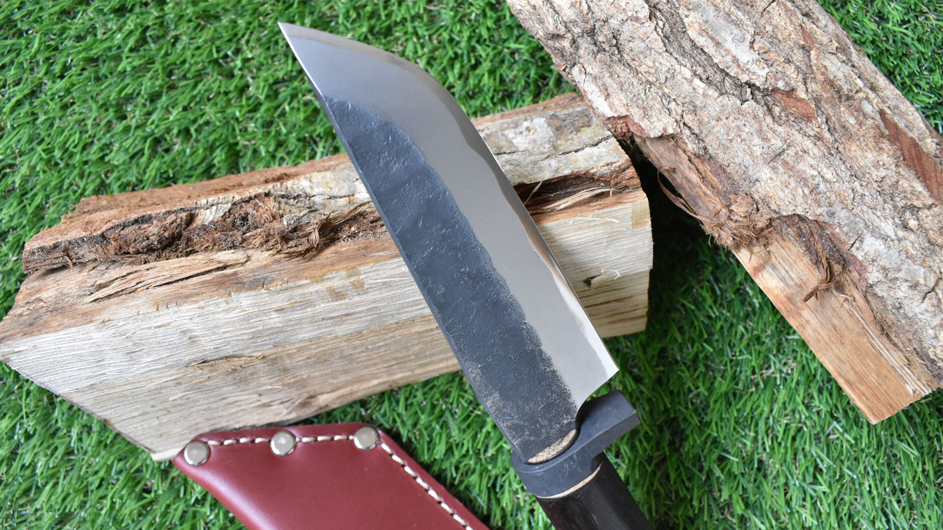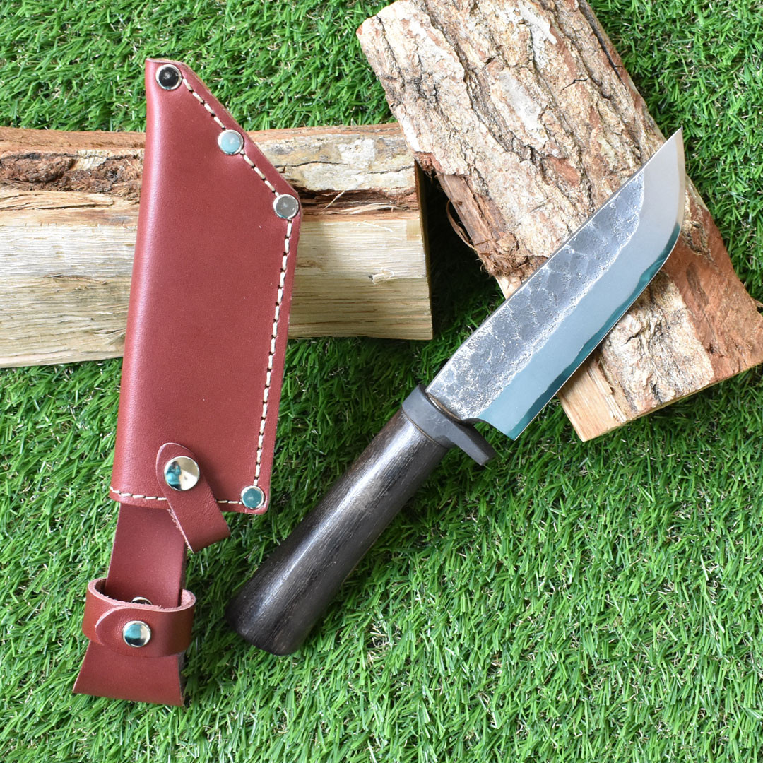[山人] 槌目鉈ナイフ モーガンレザー 牛革ケース付 キャンプ用品 アウトドア用品 鉈 ナイフ 薪割り【083S003】