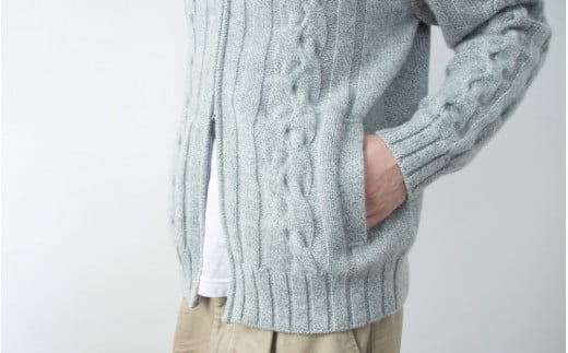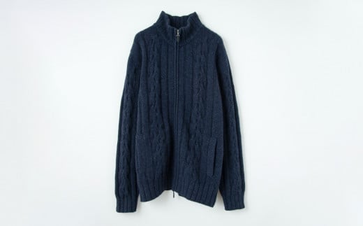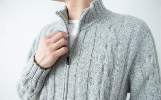 【期間限定(12/26~1/31)寄附額】【 UTO カシミヤ 】メンズ ケーブル編み ジップ カーディガン 【 L ネイビー杢 】カシミヤ 100% 岩手県 北上市 T0066 数量限定
