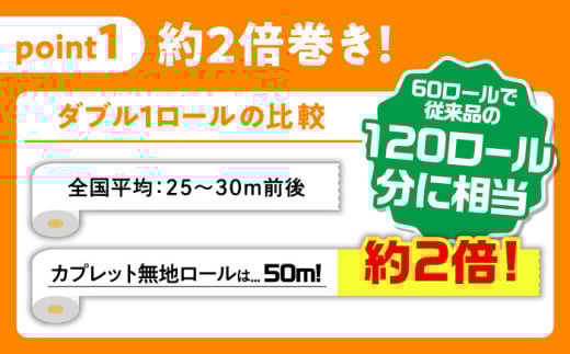 【8月発送】SDGs カプレット無地ロール 1R-50W-60 古紙再生利用脱プラ トイレットペーパー 【ダブル】2倍巻き 北海道・沖縄県・離島への配送不可 日用品 生活用品 エコ 岐阜市 / 河村製紙 [ANBJ005-8]