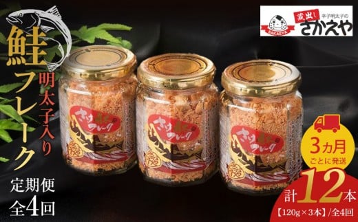 - 【全4回定期便】明太子入り鮭フレーク3本セット 3か月ごと発送【鮭 サケ 鮭フレーク 明太子 めんたいこ メンタイコ 鮭ほぐし 瓶詰め ご飯のお供 明太鮭フレーク めんたいしゃけ 魚 魚介 海産物 鮭 サケ 明太子 鮭 サケ 明太子 鮭 サケ 明太子 鮭 サケ 明太子 AC037】