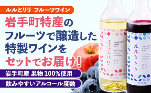 岩手町フルーツワイン「ルルとリリ」2本セット(ブルーベリー・リンゴ)ワイン フルーツワイン 360ml ギフト ブルーベリー りんご 酒 プレゼント 贈り物 林檎 果実 甘口 お酒 宅飲み 家飲み ご当地 岩手県 岩手町 岩手町ふるさと振興公社