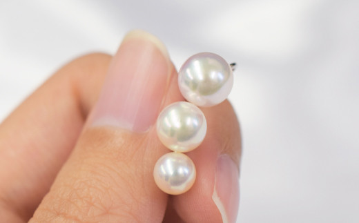 - S085-239_あこや真珠 パール ピンク 3連 イヤーカフ ベビー 5.5mm ~ 7.5mm(B:右耳用 K14WG(ホワイトゴールド))