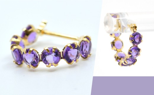 K18イエローゴールド アメジスト フープピアス管理番号686519 218-242-b