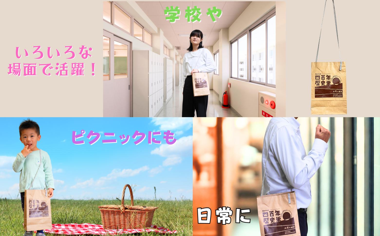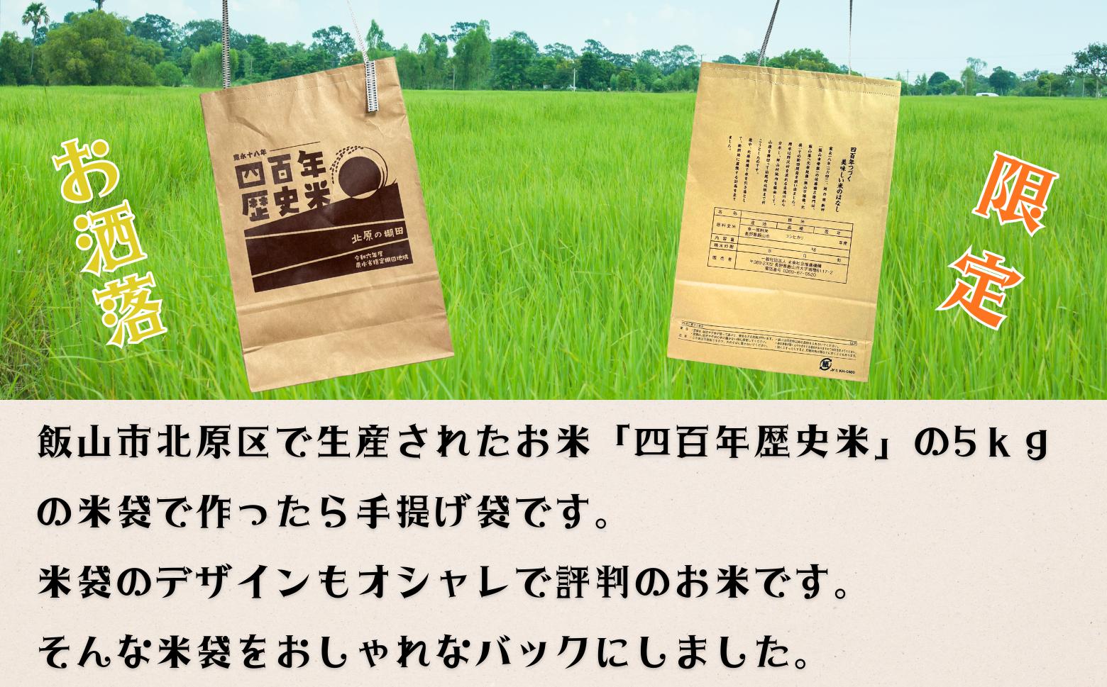 - 「四百年歴史米」米袋肩掛けバック(Bp-003) |メンズ レディース 大容量 旅行 通勤 通学 仕事 限定 リユース 長野県 飯山市