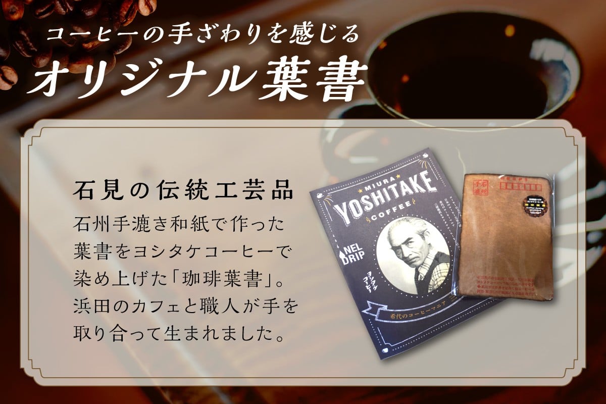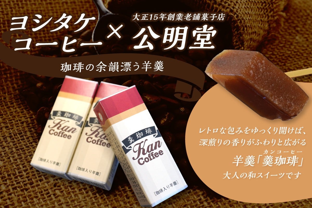 - 【チョイス限定】 世界初の缶コーヒー「ヨシタケコーヒー」染めの和紙葉書と珈琲羊羹3本セット 和紙 ハガキ コーヒー ようかん チケット 利用券 現地受取 ヨシタケコーヒー 【200_0004】