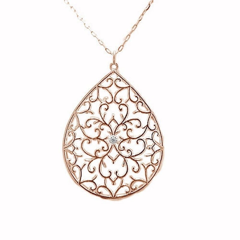 - < 甲府ジュエリー >高級ダイヤペンダント、透かし柄アンティークデザイン【選べる地金2種】