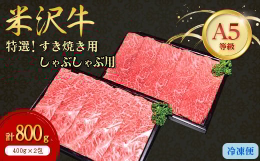 <特選米沢牛A-5>すき焼き用400gしゃぶしゃぶ用400g 計800gセット 【1203530】