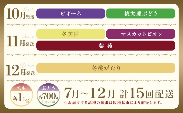 - 【2026年発送先行予約】 桃 ぶどう 6ヶ月 計15回 定期便 岡山 の 桃 と ぶどう 十五撰 10種 計12.9kg 晴れの国おかやま館(漂流岡山)《2026年7月中旬-12月中旬頃出荷》岡山県 笠岡市 もも 桃 ぶどう マスカット 果物 フルーツ 【配送不可地域あり】(離島)