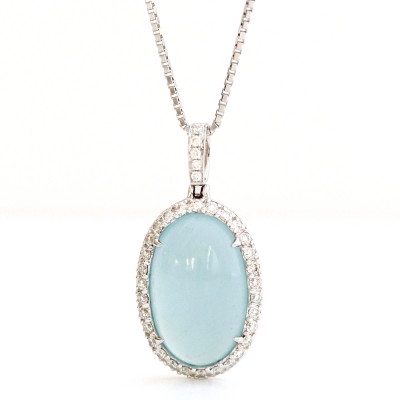K18WGミルキーアクアマリンペンダントトップ<A7.65ct ・D0.53ct>G4302【1615819】