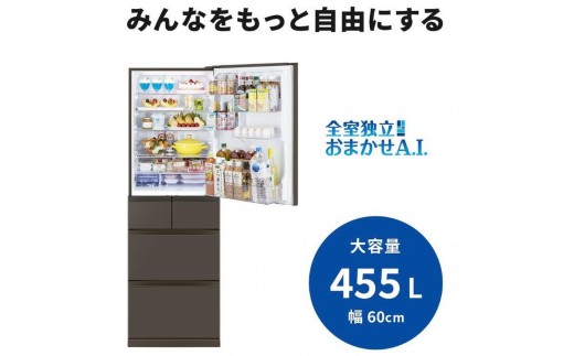 三菱電機 冷蔵庫 BDシリーズ 25年モデル MR-BD46M-H [455L /5ドア /右開きタイプ /フラットアンバーグレー]【標準設置工事付】【配送不可:沖縄・離島】