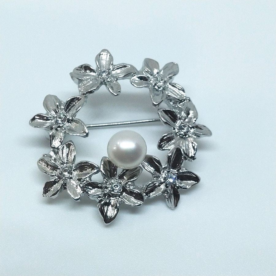 【ふるさと納税】アコヤ真珠 銀色ブローチ (8mm珠) 真珠 パール ブローチ シルバー フォーマル パーティー 結婚式 冠婚葬祭 大分県 佐伯市【AF24】【(有)オーハタパール】