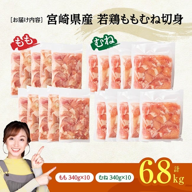 - 発送時期が選べる!宮崎県産若鶏 ももむね切身 計6.8kg(各340g×10) 【 宮崎県産 真空パック 国産 九州産 鶏肉 若鶏 肉 とり もも むね モモ肉 ムネ肉 大容量 宮崎県 川南町 送料無料 】