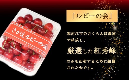 やまがた さくらんぼ 紅秀峰 "希少な大粒" 2L~3Lサイズ 360g(180g×2パック入り) 1箱【令和8年産先行予約】FS25-574