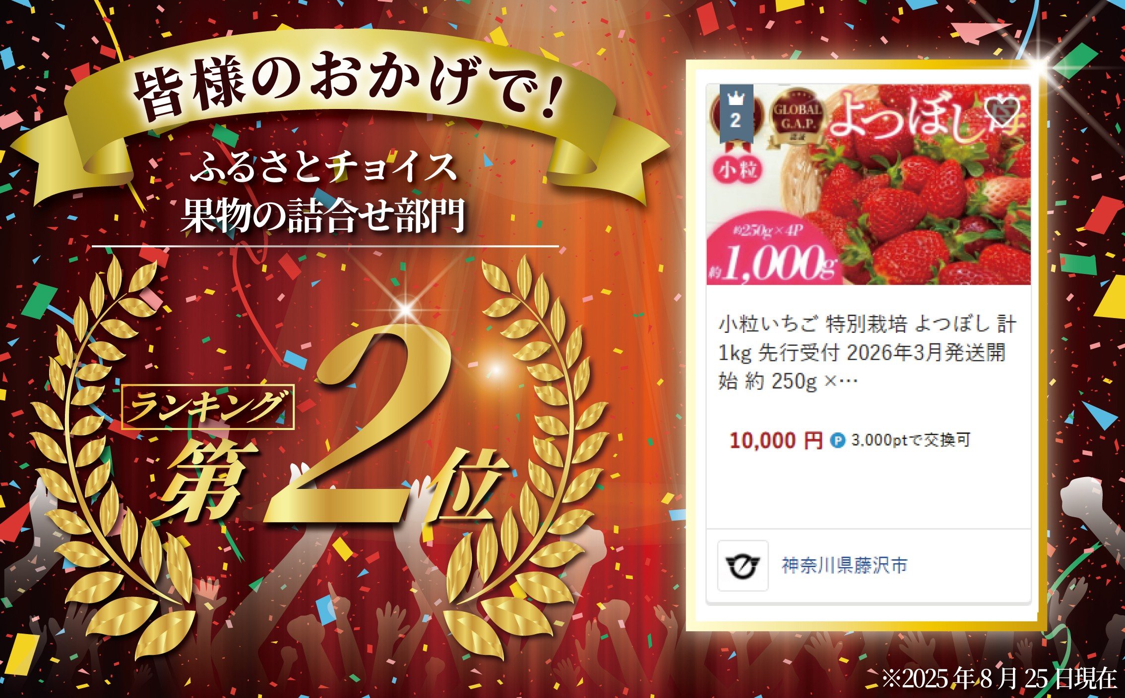 - 小粒いちご 特別栽培 よつぼし 計1kg 先行受付 2026年3月発送開始 約 250g × 4パック GLOBALG.A.P.認証 ブランドいちご 苺 イチゴ ストロベリー strawberry フルーツ 果物 旬 数量限定 期間限定 産地直送 おすすめ ichigo itigo 10000円 リッチフィールド株式会社 湘南 藤沢 神奈川