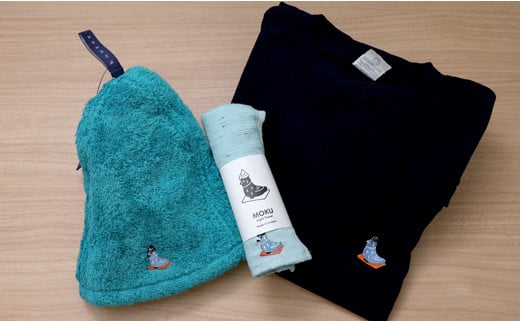 - C-16 上関海峡温泉「鳩子の湯」グッズ3点セット(MOKUタオル、サウナハット、はとまるTシャツ)【なごみ】