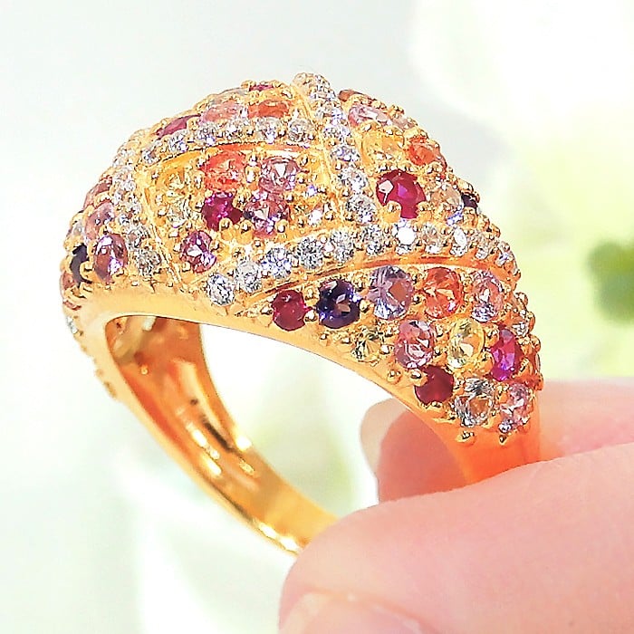 指輪 リング K18YG イエローゴールド ダイヤモンド 0.3ct パヴェ マルチカラー 赤系 レディース ゴージャス ボリューム 幅広 18金 贅沢 Pave ステンドグラス ジュエリー 【f295-r-k18yg】ALPAZ190