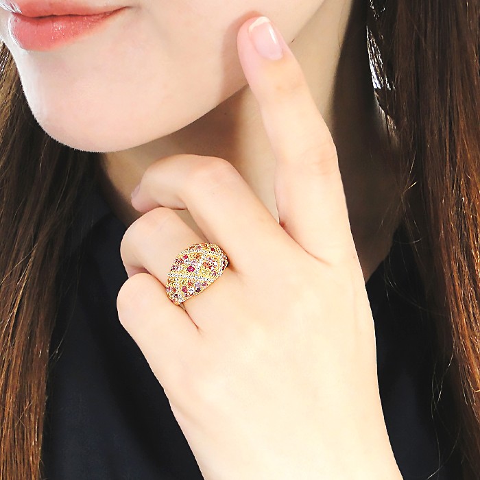 - 指輪 リング K18YG イエローゴールド ダイヤモンド 0.3ct パヴェ マルチカラー 赤系 レディース ゴージャス ボリューム 幅広 18金 贅沢 Pave ステンドグラス ジュエリー 【f295-r-k18yg】ALPAZ190