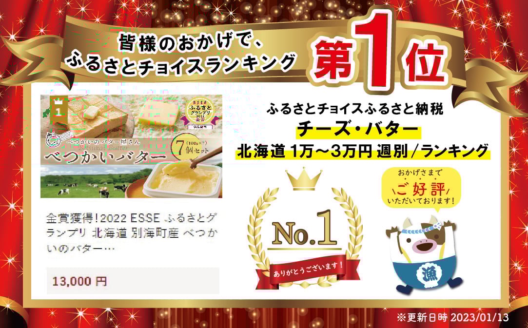 - 金賞獲得!ESSE ふるさとグランプリ 酪農日本一・北海道産 べつかいバター 7個 手作りだから 数量限定【4月発送】 ( ふるさと納税 バター 北海道 ふるさと納税 訳あり バター セット 送料無料 プレゼント)