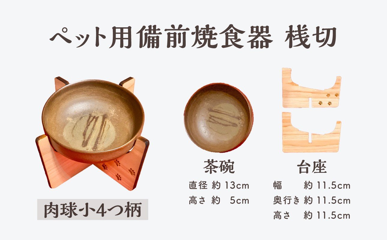 ペット用 備前焼食器 肉球小4つ柄(桟切)【ペット用 備前焼 食器 餌台】