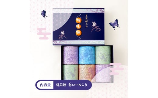 - 羽美翔 6ロール入り トイレットペーパー 30m ダブル 2枚重ね 天然パルプ100% 無香料 プリント入り
