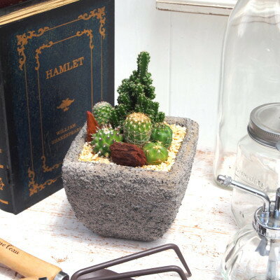 - 【ふるさと納税】サボテンミックスセメントポット仕立て1個【配送不可地域:離島・沖縄県】【1697814】