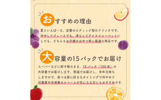 森のくだもの屋さん 果汁100%棒ジュース 150本 (10本×15パック) ( りんご ぶどう みかん ミカン 蜜柑 ブドウ 柑橘 オレンジ ゼリー フルーツ 果物 果実 シャーベット アイス 大容量 家庭用 子供 おやつ 常温 冷蔵 冷凍 )