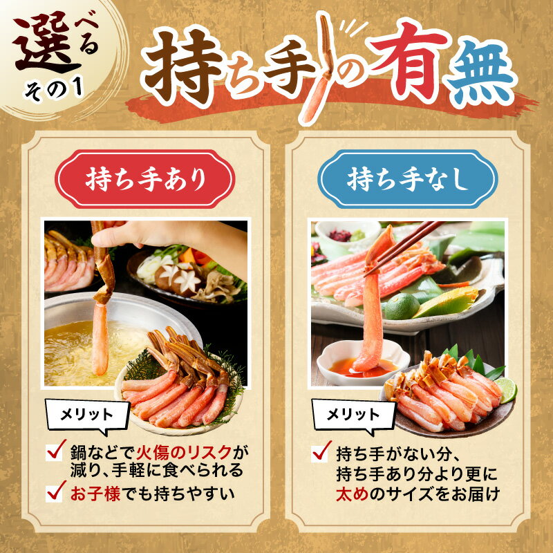 【ふるさと納税】数量限定 本ズワイガニしゃぶしゃぶ 足付き フルポーション(生食可) | 選べる内容量・配送月 | 持ち手付き 約500g 約1kg 約2kg 12本~80本【ふるさと納税3.0】
