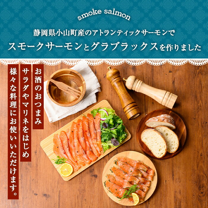 【ふるさと納税】<選べる内容量> 国産 富士山 スモーク サーモン and グラブラックス | 計320g 〜 1.28kg | スモークサーモン (冷燻) or グラブラックス or 食べ比べセット | アトランティックサーモン 国産 燻製 食べ比べ セット 小分け ギフト 贈答 ふるさと納税限定
