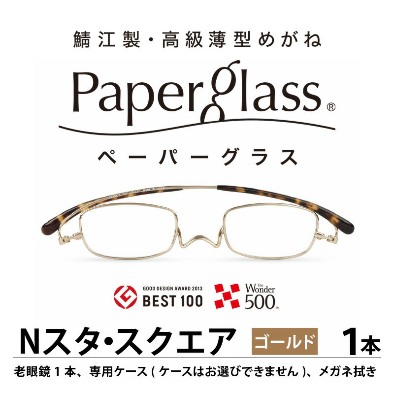 - 【ふるさと納税】鯖江製・高級薄型めがね『Paperglass(ペーパーグラス)Nスタ』スクエア/ゴールド 老眼鏡 ケース付き 薄型 メガネ拭き付き メンズ レディース[D-05709]