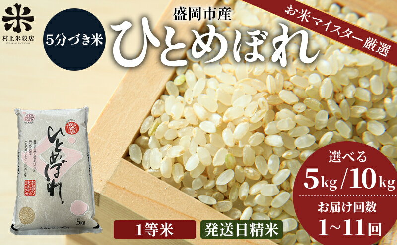 【ふるさと納税】★スーパーで買えない栄養と美味しさ★ひとめぼれ【5分づき精米】選べる内容量/発送回数 5kg 10kg(5kg×2袋) / 1回 2回 3回 4回 5回 6回 7回 8回 9回 10回 11回 令和7年産 盛岡市産 ◆新鮮!発送日精米・1等米のみを使用したお米マイスター監修の米◆