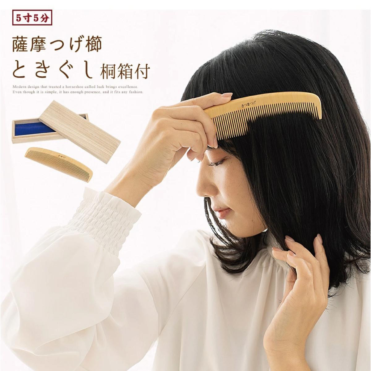 - 【大阪府知事指定伝統工芸品】薩摩つげ櫛ときぐし5寸5分(椿油・桐箱付)