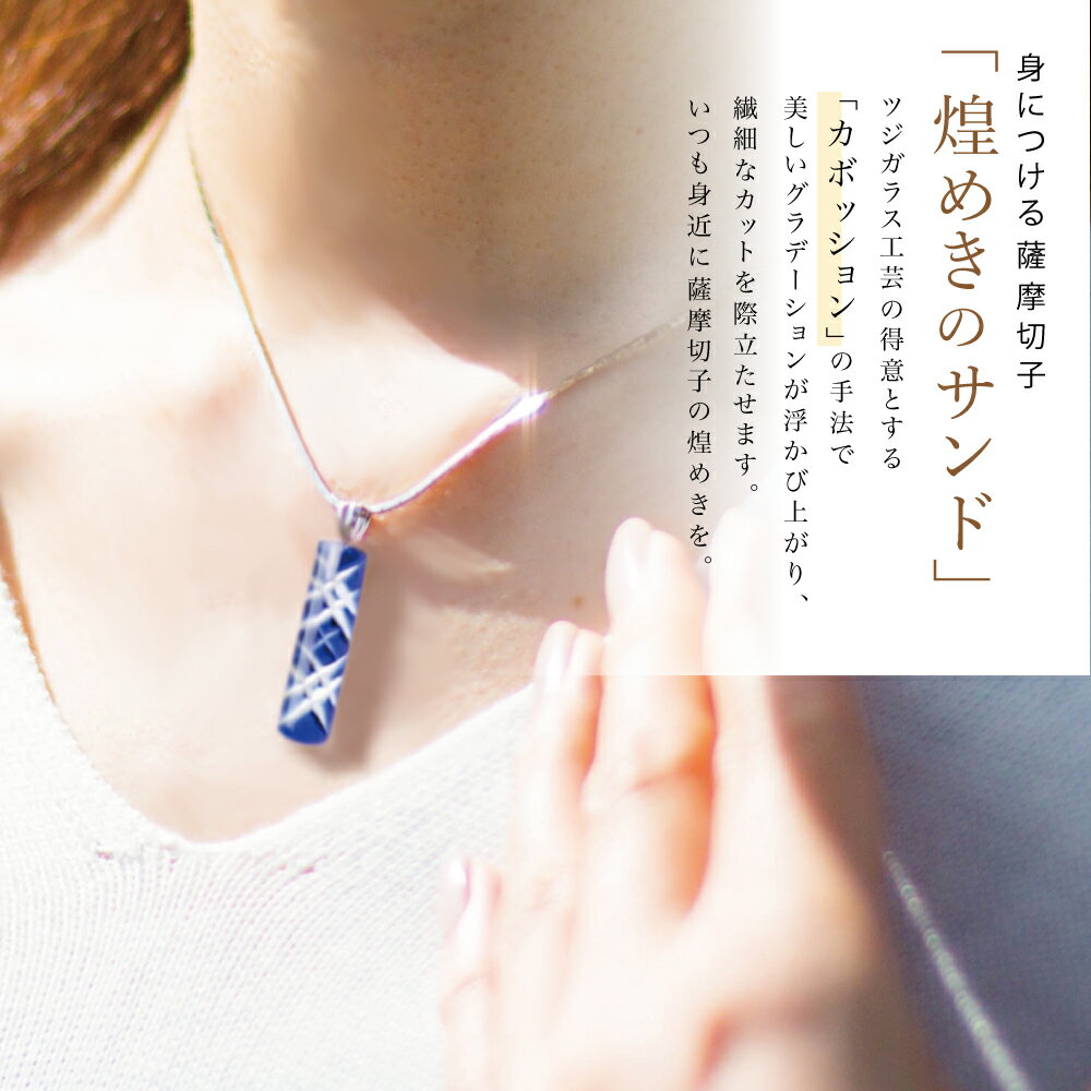 【ふるさと納税】[薩摩切子] ペンダント 長角 『煌めきのサンド』(薩摩切子カラー:金赤・紅・瑠璃・緑・紫の5色から1つ選択) 鹿児島 伝統的工芸品 一点もの 職人の技 手作り アクセサリー ネックレス ツジガラス工芸 ギフト 贈り物 贈答 プレゼント 南さつま市